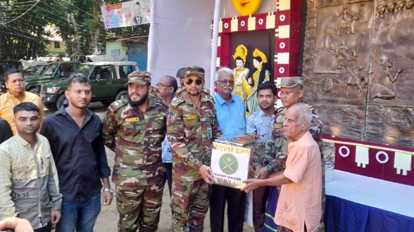 বোয়ালখালীতে দুর্গাপূজা উপলক্ষ্যে সেনাবাহিনীর উপহার সামগ্রী বিতরন।