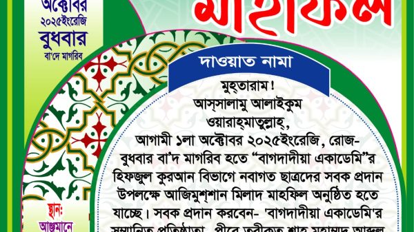 বাগদাদীয়া একাডেমির হিফজুল কুরআন বিভাগের ছাত্রদের সবক প্রদান উপলক্ষে মিলাদ মাহফিল।