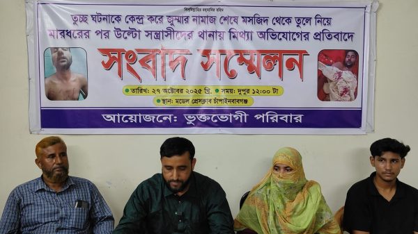 তুচ্ছ ঘটনাকে কেন্দ্র করে জুমার নামাজ শেষে মারধরের প্রতিবাদে মানববন্ধন