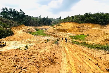পাহাড় কেটে লেক তৈরীর চেষ্টা, এক্সক্যাভেটর জব্দ।