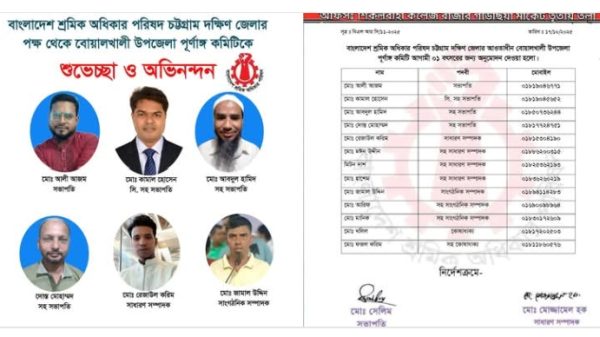 বাংলাদেশে শ্রমিক অধিকার পরিষদ বোয়ালখালী উপজেলা কমিটি অনুমোদন।