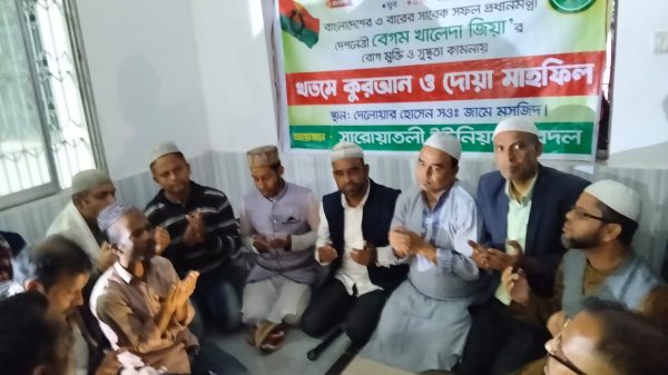 সারোয়াতলী ইউনিয়নে খালেদা জিয়ার রোগ মুক্তি কামনায় দোয়া মাহফিল অনুষ্ঠিত।